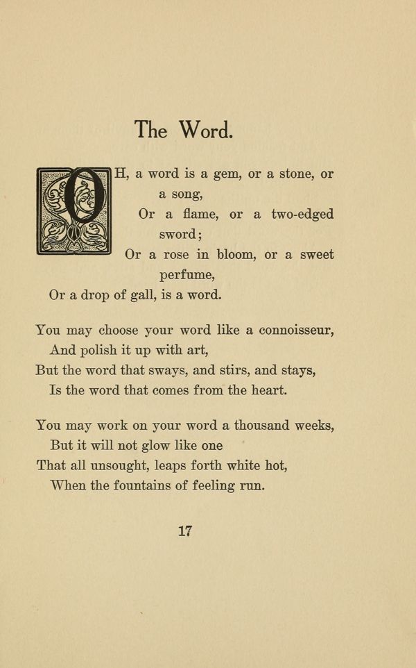 OH, a word is a gem, or a stone, or a song,