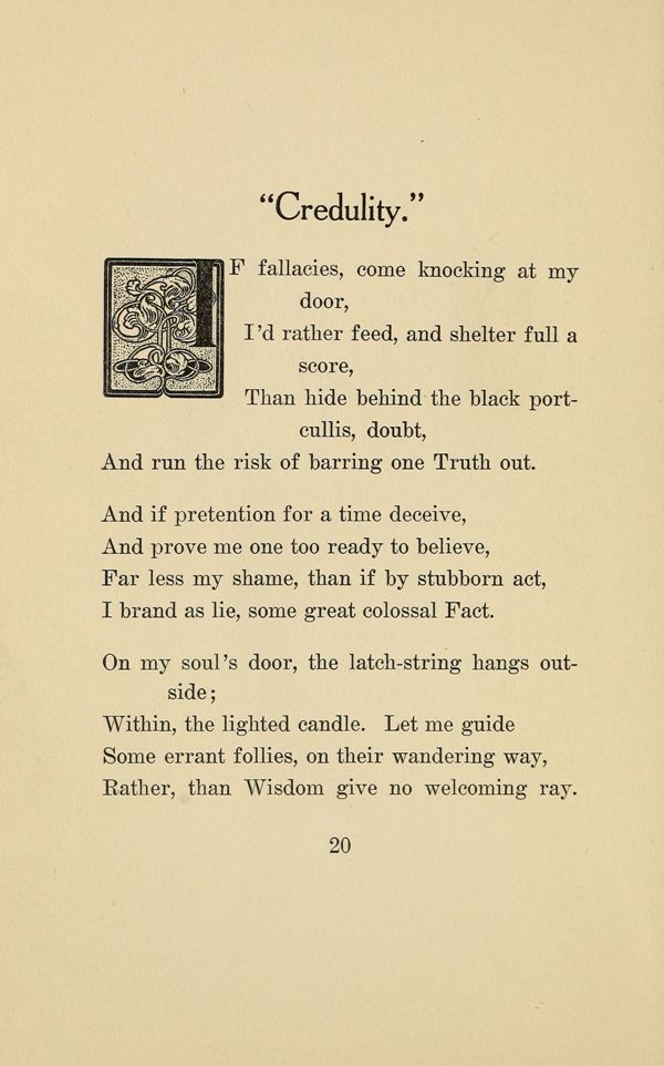 A Dialogue ~ The Weed ~ Strength ~ Affirm ~ The Chosen ~ The Nameless ~ The Word ~ Assistance ~ Credulity ~ Consciousness ~ The Structure ~ Our Souls ~ The Law ~ Knowledge ~ Give ~ Perfection ~ Fear ~ The Way ~ Understood ~ His Mansion ~ Effect ~ Three Things ~ Obstacles ~ Prayer ~ Climbing ~ "There Is No Death, There Are No Dead" ~ Realization ~ Contents -